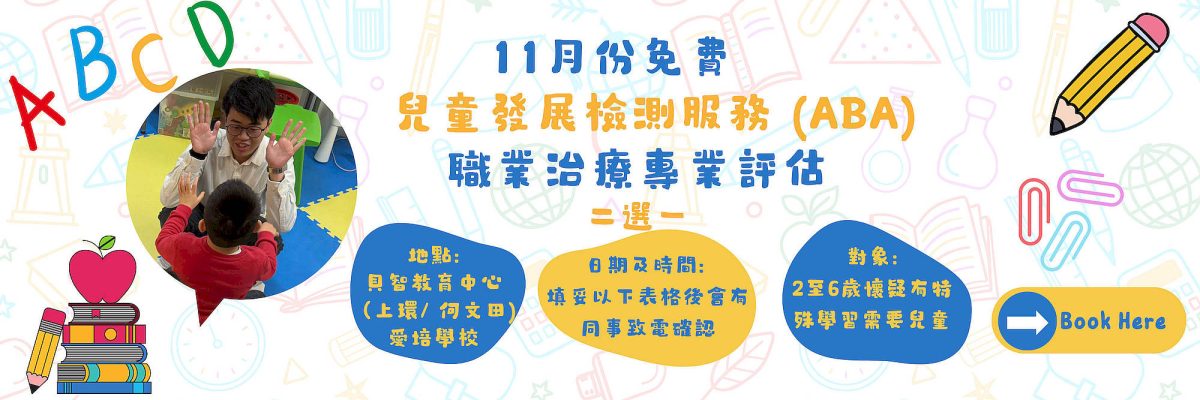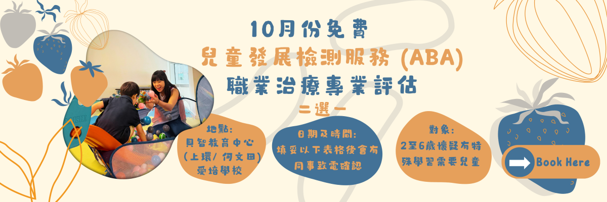 我們提供全面的課程和評估,以監測兒童在關鍵發展領域的發展,包括:認知能力(cognitive function)、小手肌訓練(fine motor)、大肌肉訓練(gross motor)、感覺統合(sensory integration)、自理能力(self-help skills)、表達和接受性語言(expressive and receptive language),以及社交關係(social relationships)。我們的課程是基於資源豐富和程度適當的教學策略以設計。